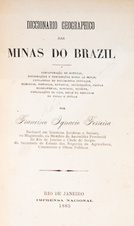 Diccionario Geographico das Minas do Brazil: Concatenação de Noticias, Informações e Descripções sobre as Minas, Extrahidas de Documentos Officiaes, Memorias...
