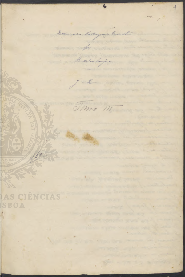 3 vols.. Herculano, testamenteiro de Ramalho, vendeu os três tomos do dicionário à Academia das Ciências (cf. Inocêncio, I, p. 63; VIII, p. 63-64). Enc. com lombada de percalina. Pastas de papel de fantasia.. Nº 1: de ABADE a AZURRAR. 1 fl. de título inum. + 2 fls. em branco inums. + 41 fls. de texto nums. a lápis + 2 fls. em branco inums. 355 x 226 mm.. Nº 2: de ABAIXADOR a ZUINGLIANOS. 1 fl. de título inum. + 2 fls. em branco inums. + 105 fls. de texto nums. a tinta e lápis + 1 fl. em branco inum. 326 x 222 mm. Nº 3: de ABAIXADOR a ZUINGLIANOS. 1 fl. de título inum. + 2 fls. em branco inums. + 99 fls. de texto nums. a tinta e a lápis + 85 fls. de texto nums. a tinta e a lápis + 1 fl. em branco inum. 327 x 225 mm.