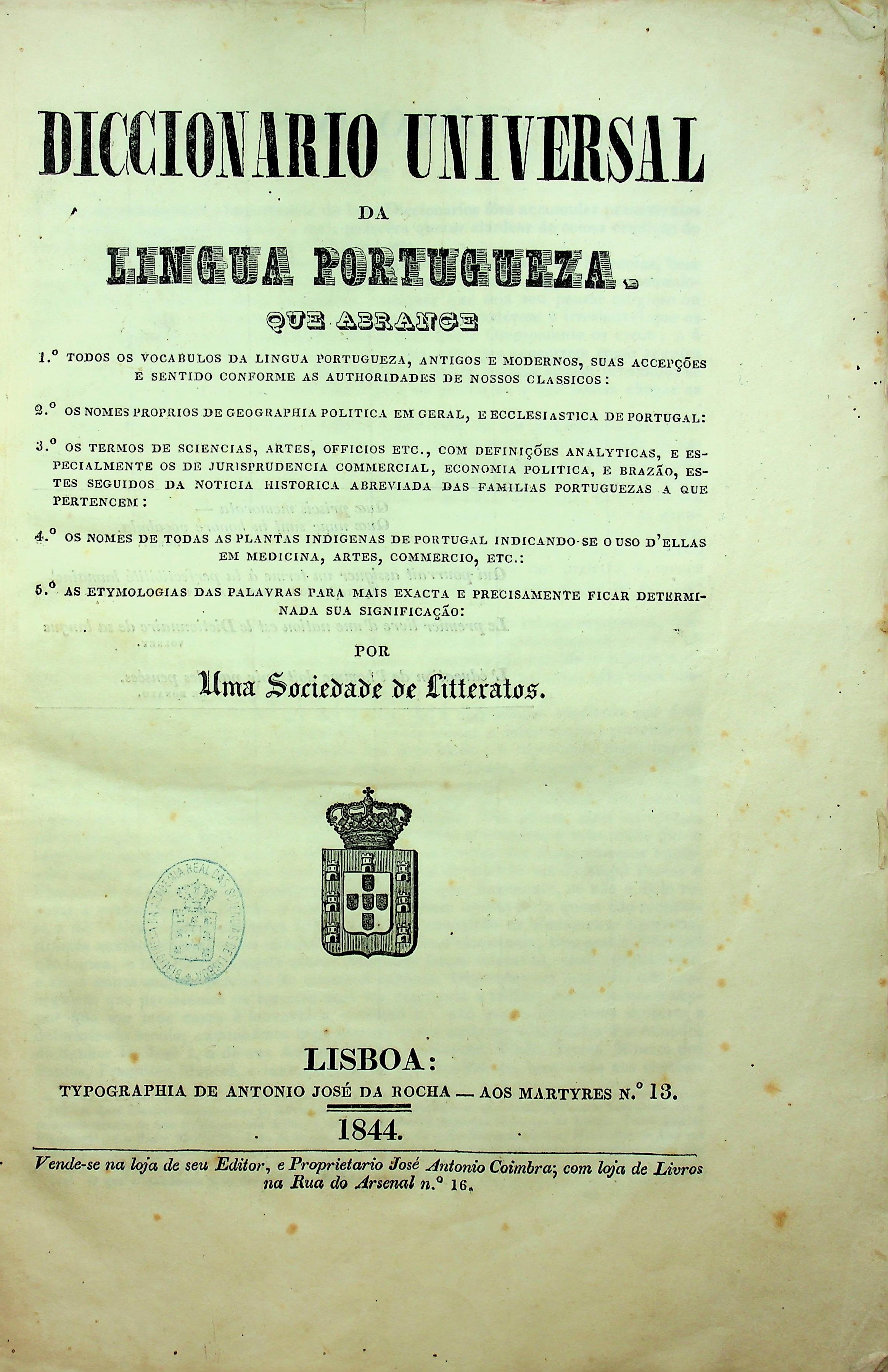 Diccionario Universal da Lingua Portugueza por uma Sociedade de Literatos